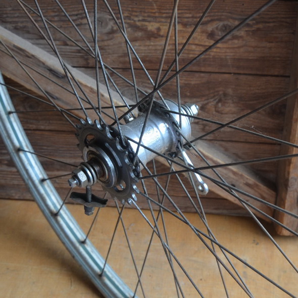Laufrad 28 x 1,75, silber, grün liniert, Torpedo-Nabe 1954, orig. Altbestand...