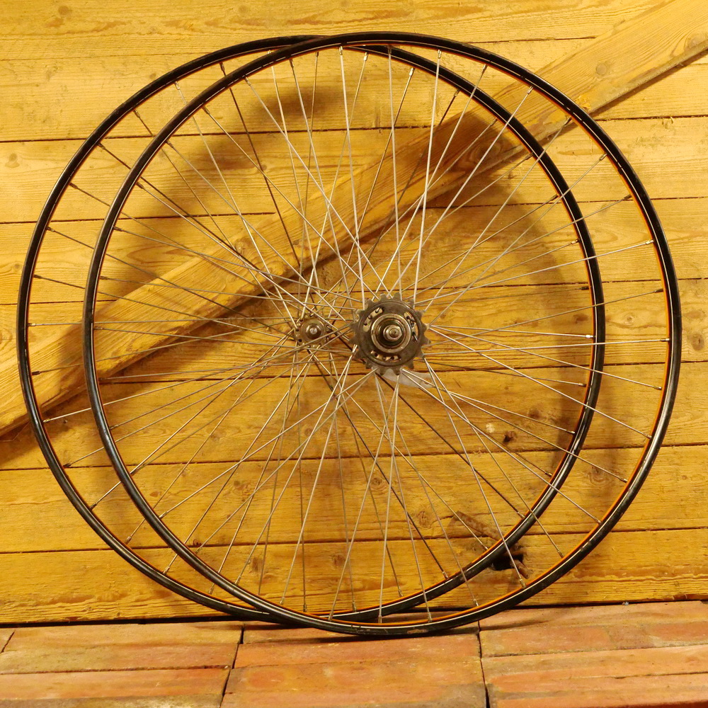 Laufradsatz 28 Zoll, Außenmaß ca. 645 mm, für Wulstbereifung, 1953, WECO u. F&S TORPEDO Nabe, gebr.
