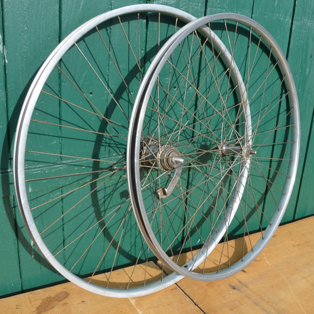 Laufradsatz 28 x 1 5/8, Alu mit F&S Naben von 1950, Breite 27 mm