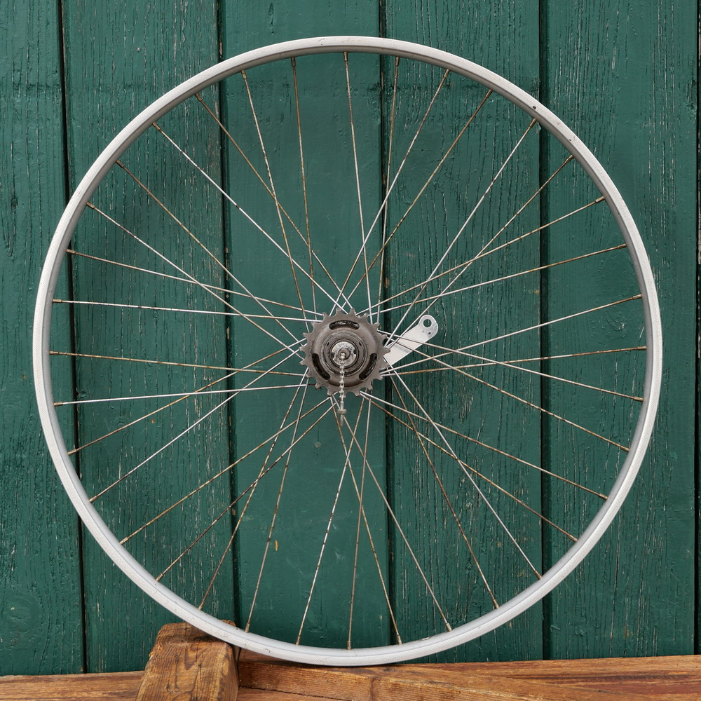 Hinterrad mit WEINMANN Alu-Felge 26 Zoll (559), 1960er J., F&S Torpedo Dreigang-Nabe Mod. 515, gebr.