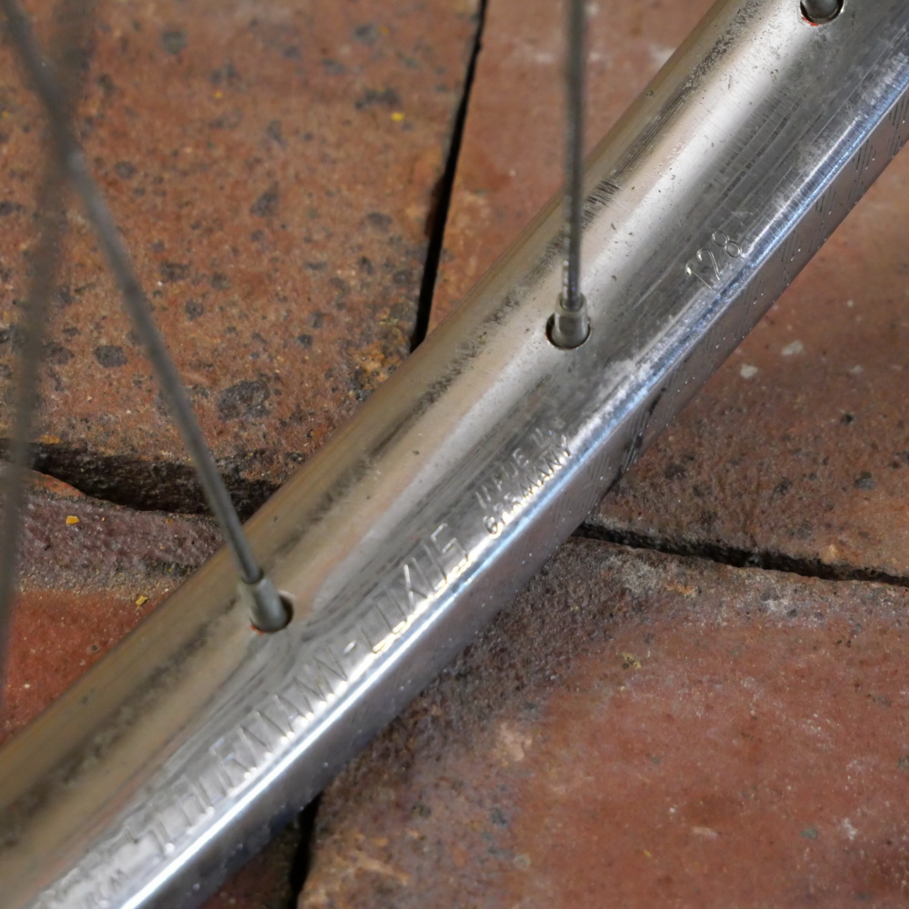 Vorderrad, 26 Zoll (559), 80er J., Felge SCHÜRMANN verchromt, Breite 29 mm, Nabe UNION verchromt, Einbaumaß ca. 92 mm, 2mm Speichen verzinkt, gebraucht mit Patina, Zustand gemäß Fotos