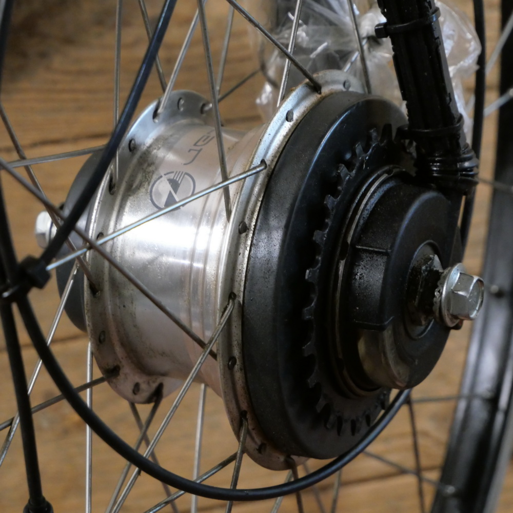 Hinterrad mit GRÜNERT-Felge, Alu, schwarz, 26 Zoll (559), Breite ca. 28 mm, Nabe SACHS Elan 12-Gang inkl. Zubehör und Steckritzel 26 Zähne, Einbaumaß ca. 132 mm, 36 Loch, 2 mm Speichen nirosta, leicht gebraucht, Zustand gemäß Fotos