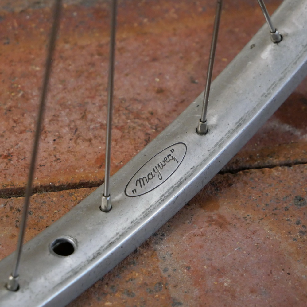 Hinterrad mit MAYWEG-Felge, Alu, 28 Zoll (622), Breite ca. 28 mm, Nabe F&S 3-Gang Mod. S mit Steckritzel 24 Zähne, Einbaumaß ca. 118 mm, 36 Loch, 2 mm Speichen nirosta, leicht gebraucht, Zustand gemäß Fotos