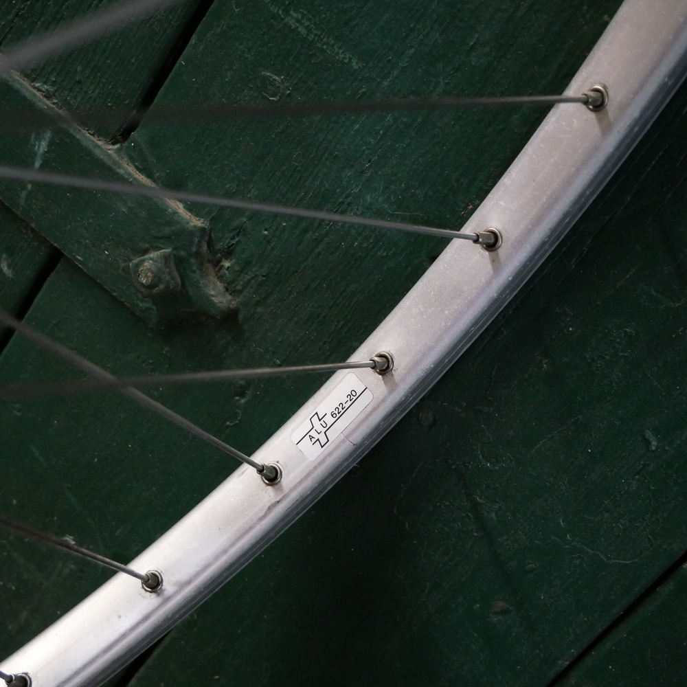 Vorderrad, 28 Zoll (622), für Sportrad, Alu-Felge silber, für Drahtbereifung, Breite ca. 24mm, SANSIN Alu-Nabe silber, Einbaumaß ca. 100mm, 2mm Niro-Speichen, gebraucht, mit Gebrauchs- u. Alterungsspuren, technisch gut, Zustand gemäß Fotos