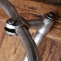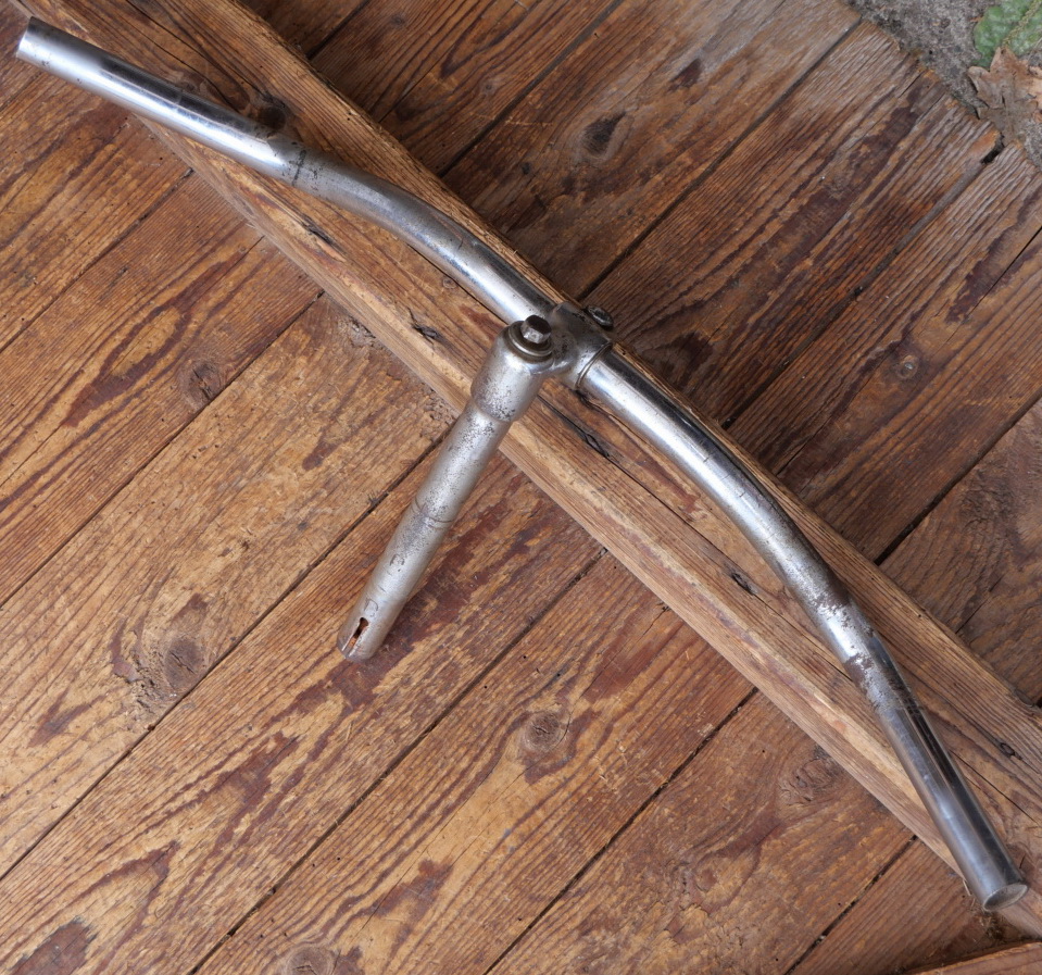 Fahrradlenker für Halbrenner, original 30er-50er Jahre, verchromt, Durchmesser Lenkrohr und Schaft 22,2 mm, Breite ca. 620 mm, Schaftlänge ca. 180 mm, gebraucht mit Patina, Zustand siehe Bilder.