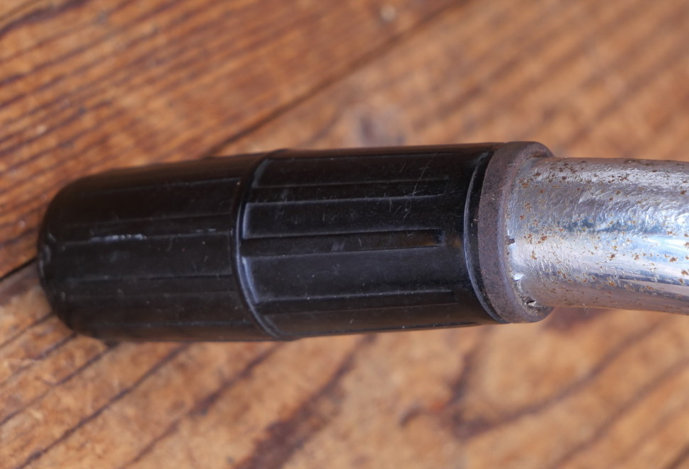 Fahrradlenker für Tourenrad, original 30er Jahre, verchromt, Durchmesser Lenkrohr und Schaft 22,2 mm, Breite ca. 540 mm, Schaftlänge ca. 190 mm, inkl. original Bremshebel und AHA Bakelit-Griffen, gebraucht mit Patina, Zustand siehe Bilder.