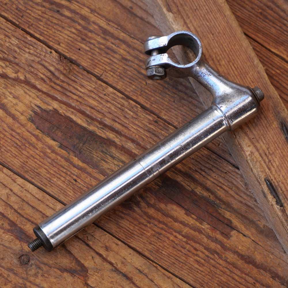 Vorbau Fahrrad KOERDT (FRIKO), original 50er/60er Jahre, für Sportrad, verchromt, Länge 65 mm, Schafthöhe ca. 160 mm, Durchmesser Klemmung 25 mm, gebraucht mit Patina, Zustand gemäß Fotos.