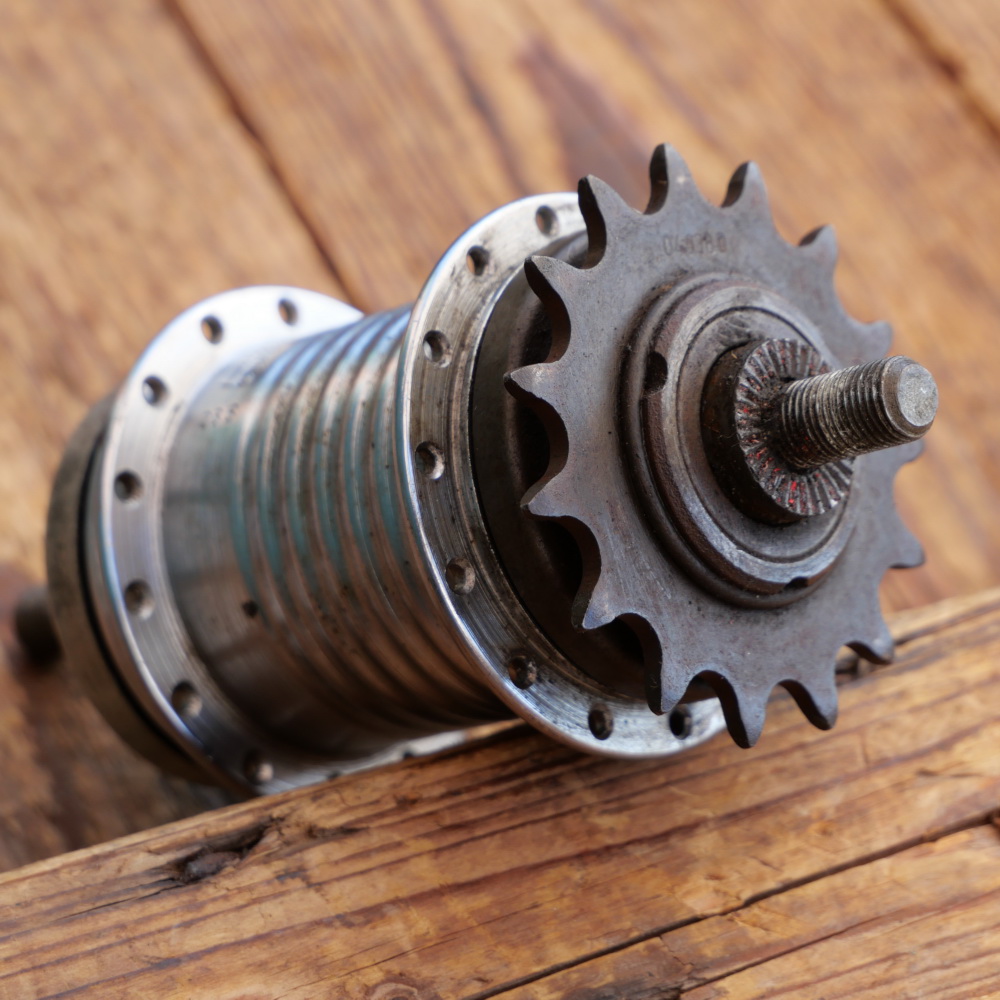 Nabe Hinterrad Fahrrad, F&S Torpedo Duomatic 2-Gang, verchromt, 70er/80er J., Einbaumaß ca. 110 mm, 28 Loch, inkl. Steckritzel 15 Zähne, gebraucht mit schöner Patina, Funktion gut, Zustand gemäß Fotos