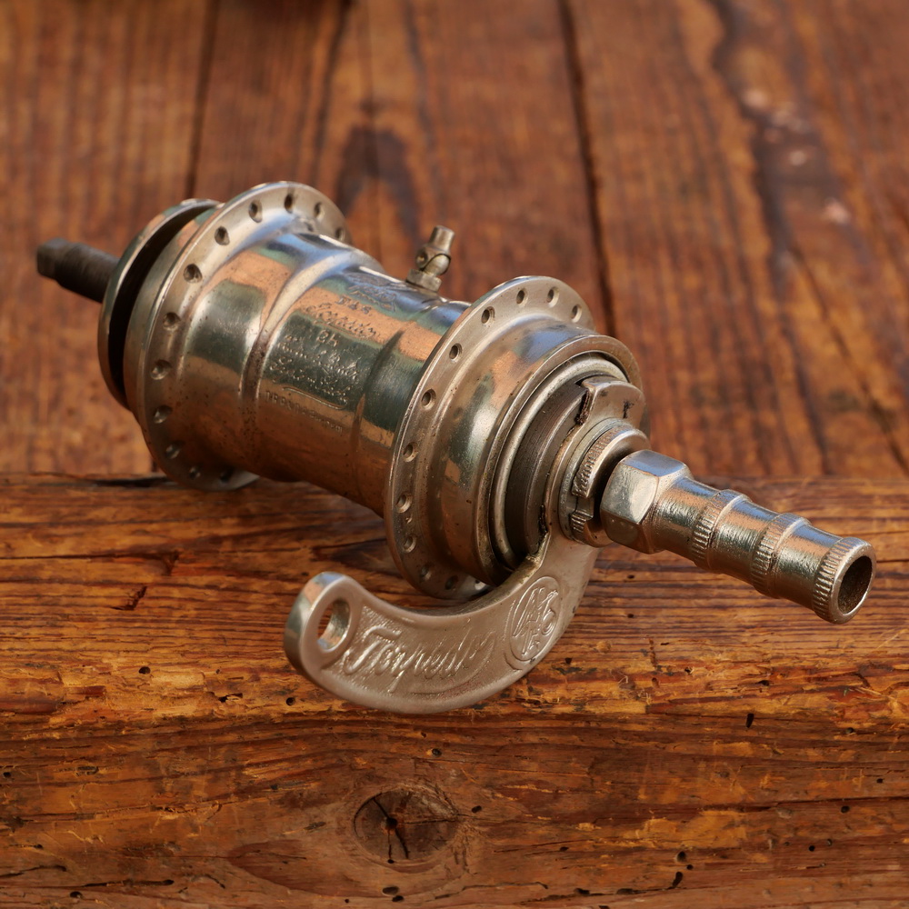 Nabe Hinterrad Fahrrad, F+S Torpedo Mod. 09, Bj. 1925, vernickelt, restauriert