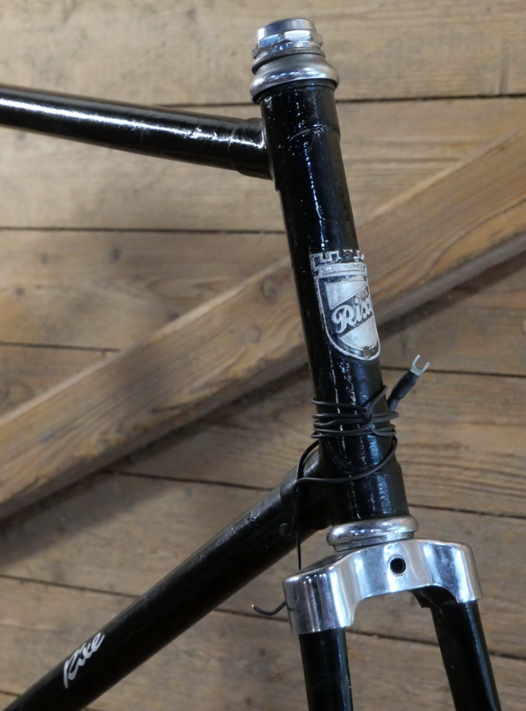 Fahrrad - Herrenrahmen RIXE, 1950er J., Rahmennummer: unleserlich, Rahmenhöhe: 59,5cm, 26 Zoll, Einbaumaß: 114mm, Innenlager 40/70mm, schwarz überstrichen, Steuerlager gut, Gabel für Trommelbremse, inkl. Original-Schutzbleche, gebraucht, Zustand gemäß Bildern