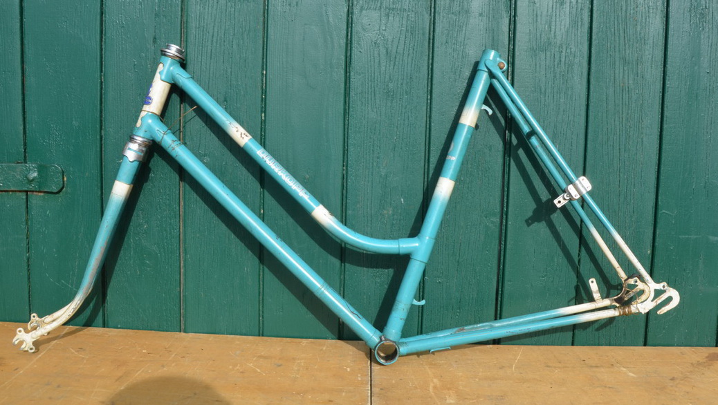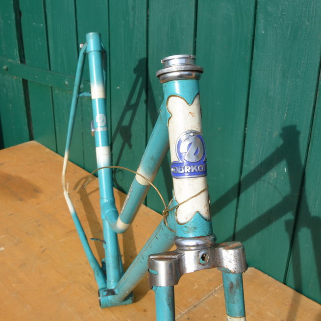 Fahrradrahmen "Dürkopp" Damenausführung 26 Zoll, 50er Jahre, türkis, Rahmenhöhe 55 cm, Rahmennummer 2261XXX