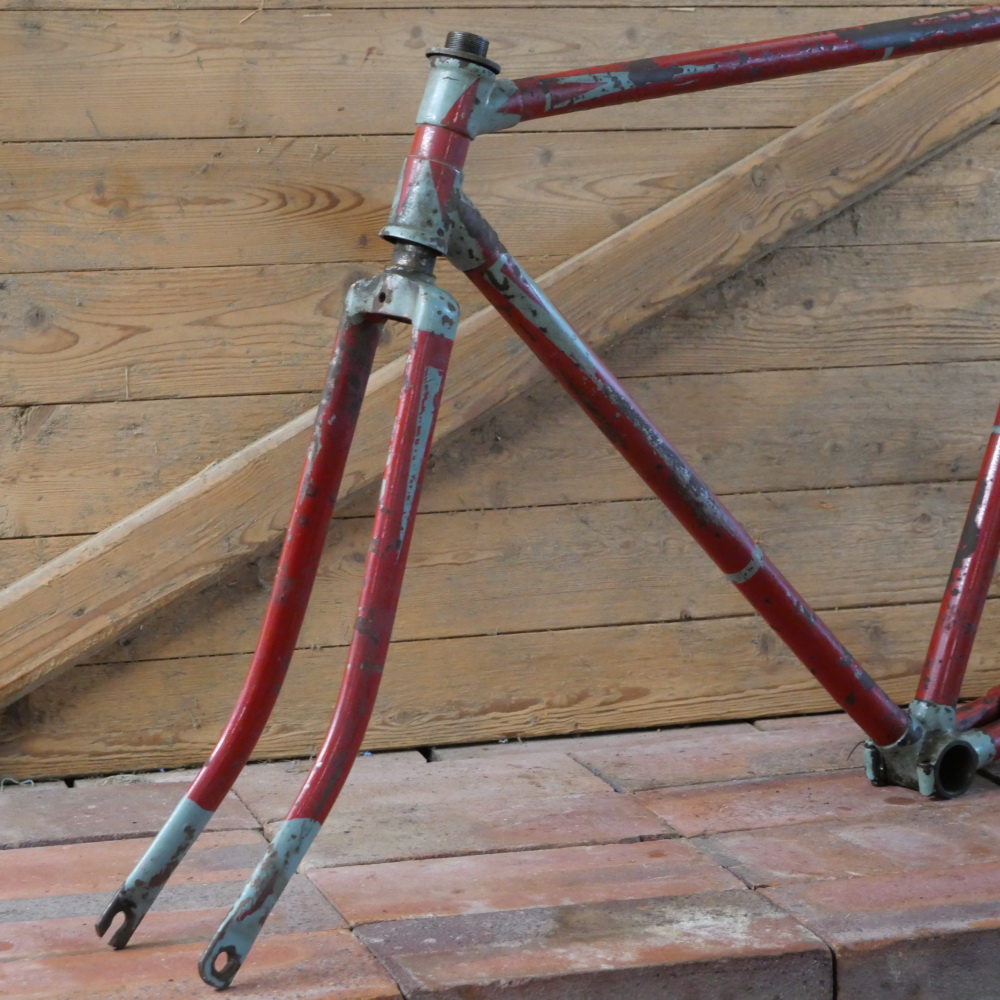 Fahrradrahmen, 28 Zoll, Herrenausführung, sehr stabile Ausf., 1920er/30er Jahre, für Innenlager mit Schraubschalen: Durchmesser 34mm, Breite 71mm, Rahmenhöhe 57 cm, überstrichen, Zustand gemäß Fotos