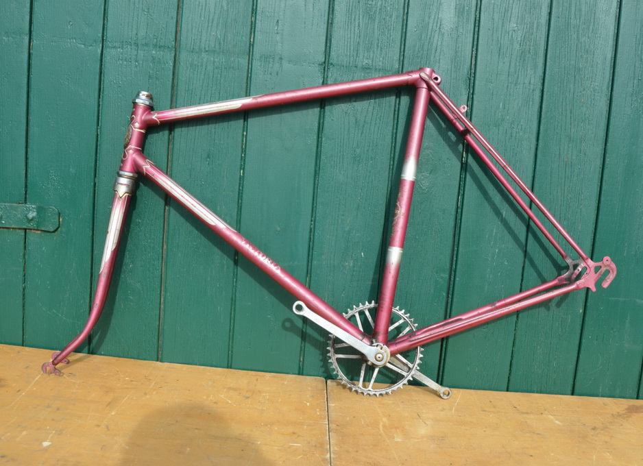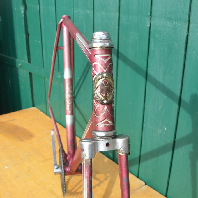 Fahrradrahmen "Victoria" Sportradausführung 28 x 1 ¼, pink metallic mit Flügellinierung, Randonneur geeignet, Rahmenhöhe 56 cm, Rahmennummer 1528XXX, 50er Jahre