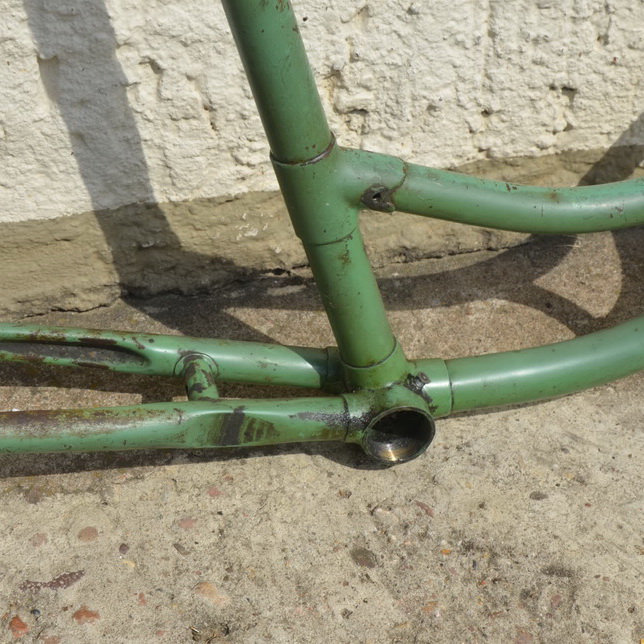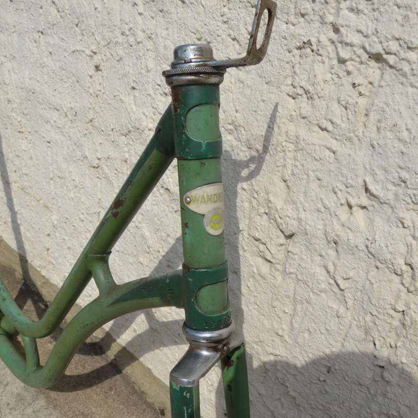 Fahrradrahmen "Wanderer", grün mit Strahlenkopf, Sport-Damenausf. 28 Zoll, Stahl, RH=55 cm, 30er Jahre. Ideal zum Aufbau eines Klassikrades nach eigenen Wünschen und Vorstellungen.