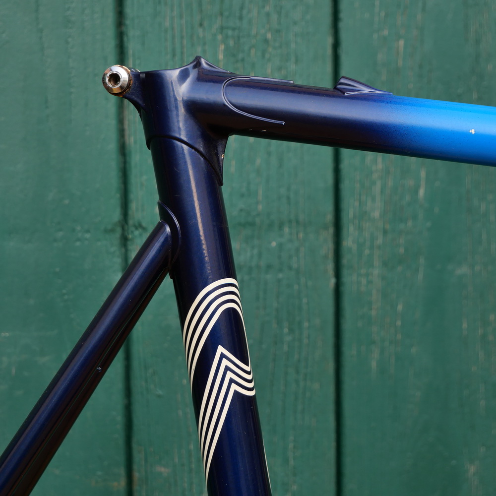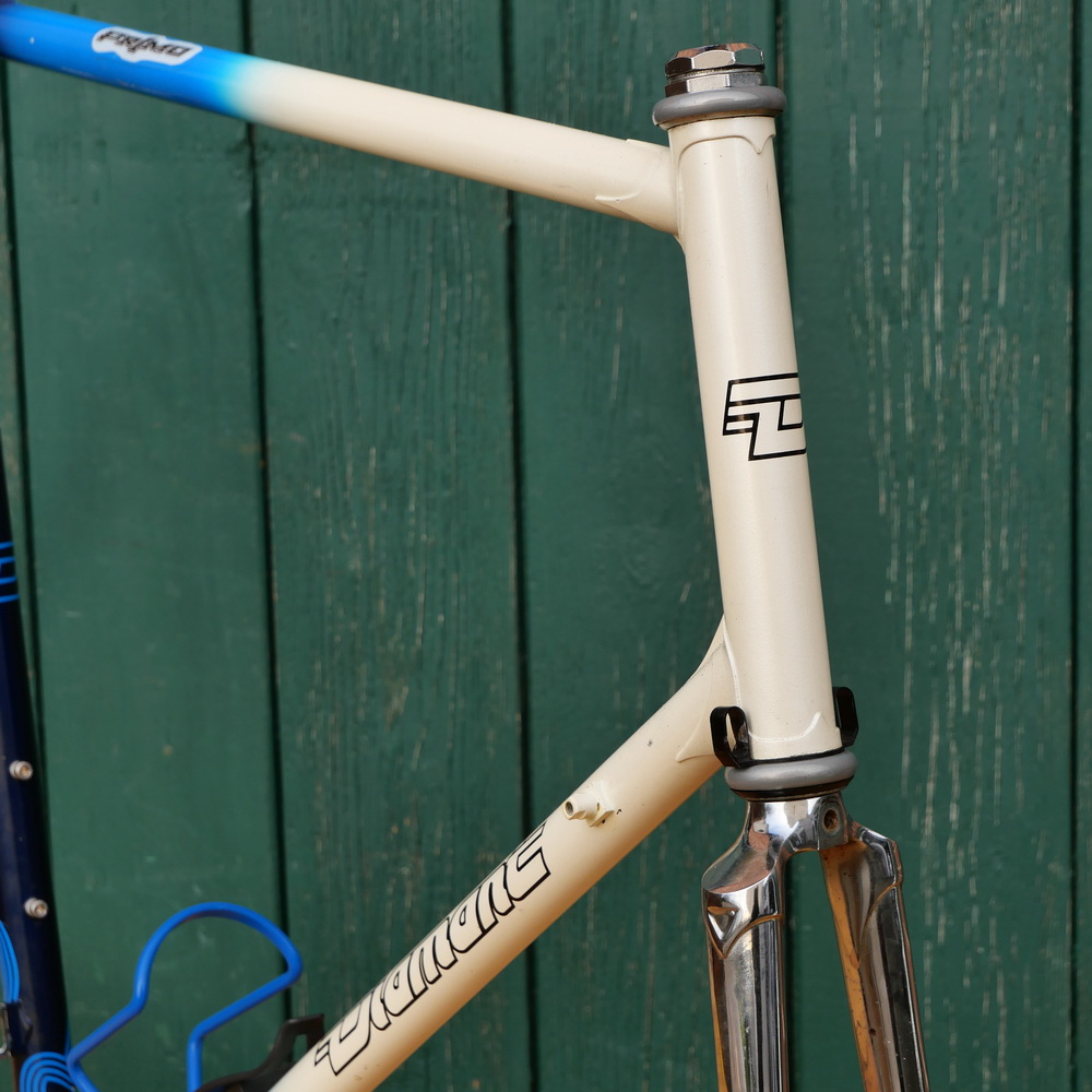 Fahrradrahmen DIAMANT/Belgien, Herren, für Rennrad, 27/28 Zoll, Stahl, 80er/90er J., blau/weiß, Rahmenhöhe 64 cm, Einbaumaß 130 mm, mit Vierkant-Patronen-Lager BSA, Steuersatz Shimano 105, gebraucht mit schöner Patina, Steuerlager gut, Zustand gemäß Fotos