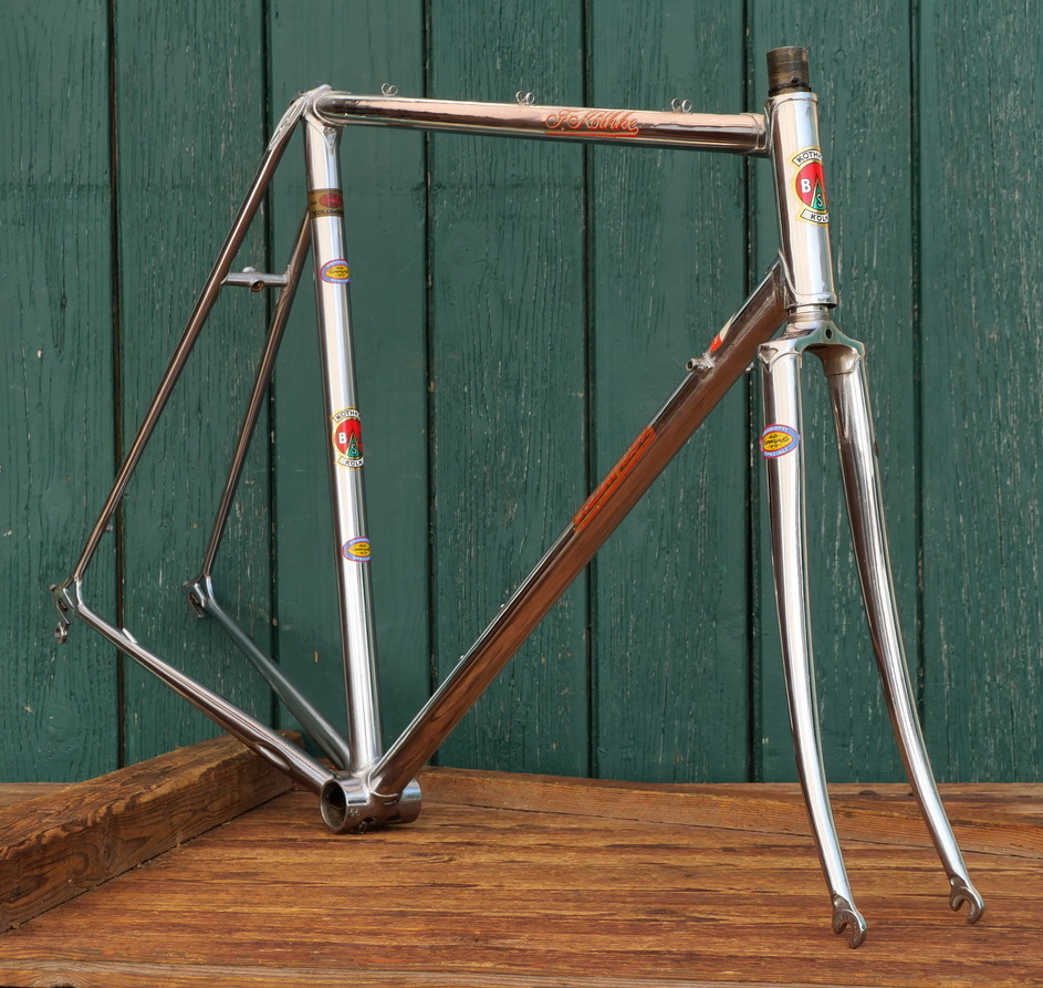 Fahrradrahmen KÖTHKE/MEAZZO, Modell Champion, Herrenausführung für sehr hochwertiges Rennrad, 27/28 Zoll, 70er J., vollverchromt, COLUMBUS Rohrsatz, Rahmenhöhe 57 cm (c-t) , Einbaumaß ca. 127 mm, keine Rahmennummer, für ITA-Lager (36x24), leicht gebraucht mit schöner Patina, Zustand gemäß Fotos