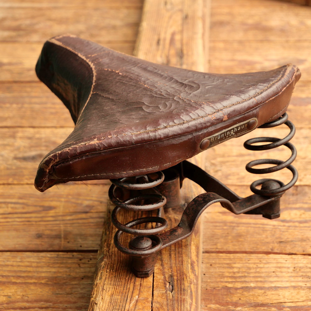 Sattel BRÜNNINGHAUS, für Herrenrad, Lefa, rotbraun, Gestell schwarz, original 40er J., WW2, gebr.