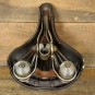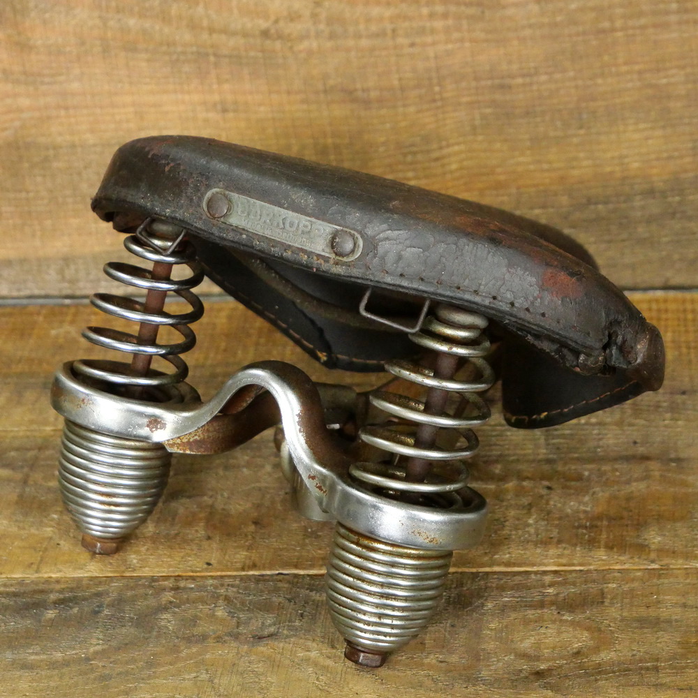 Sattel DÜRKOPP, für Herrenrad, Leder, braun, Gestell verchromt, original 50er Jahre, Länge ca. 26 cm, Breite ca. 21 cm, gebraucht, Leder mit Alterungs-und Gebrauchsspuren, Zustand siehe Bilder.