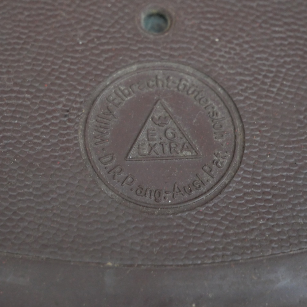Sattel Damen, W.E.G. Extra, für Tourenrad, Gummi, rotbraun, Gestell verchromt/lackiert, original WW2 30er/40er Jahre, Länge ca. 23 cm, Breite ca. 24 cm, alte Neuware mit Patina, Zustand gemäß Bildern