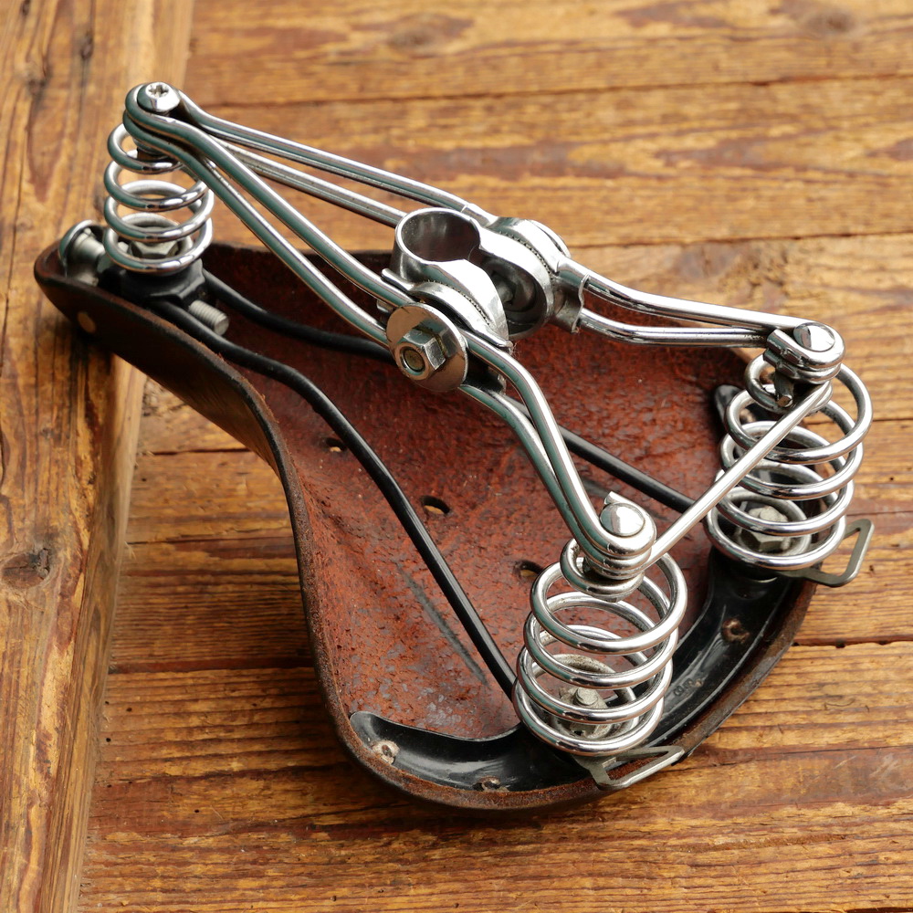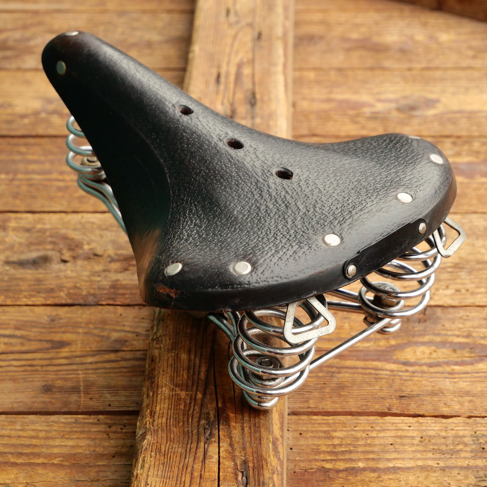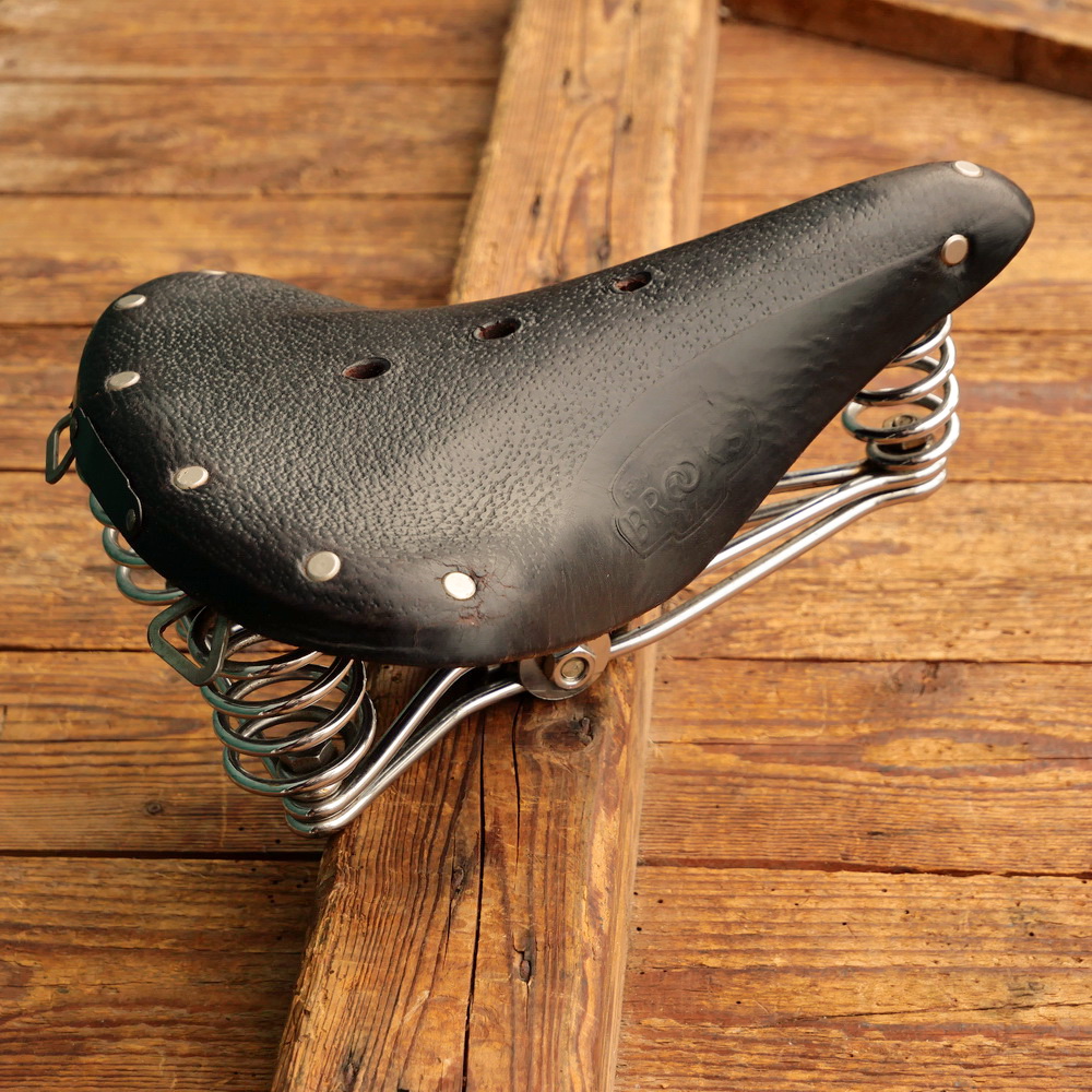 Sattel, Herren, BROOKS B73, 1981, Leder schwarz, Gestell verchromt/schwarz, Breite ca. 20 cm, Länge ca. 27 cm, gebraucht mit schöner Patina, Zustand gemäß Bildern