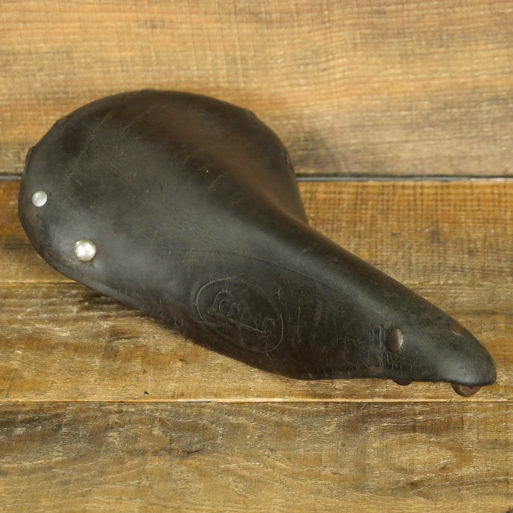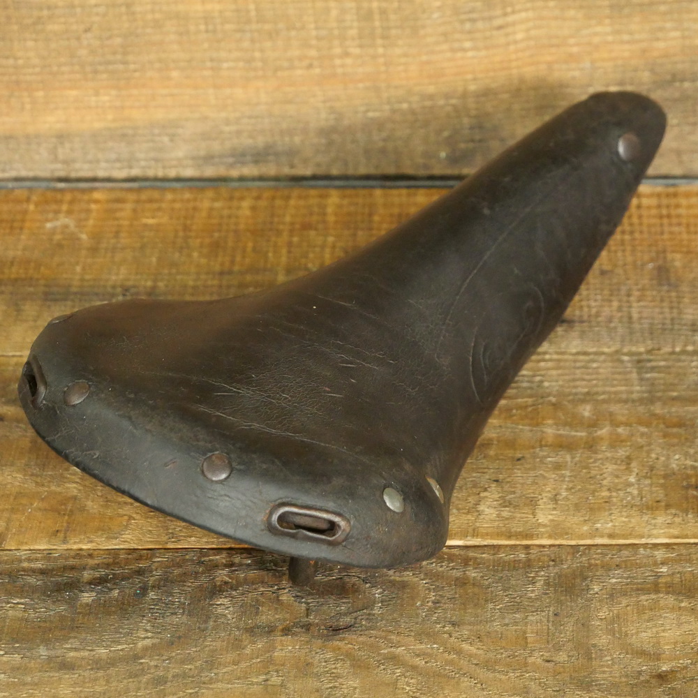 Sattel, Herren, LEPPER, 30er J., für Rennrad, Leder braun, Gestell schwarz, Breite ca. 13 cm, Länge ca. 28 cm, gebraucht, 2 Nieten erneuert, Zustand gemäß Bildern