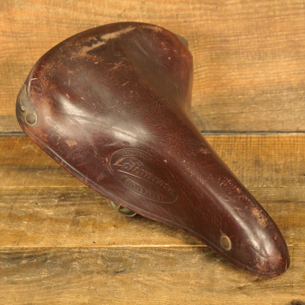 Sattel, Herren, LOHMANN Mod. 208, 50er J., für Sportrad, Leder braun, Gestell verzinkt, Breite ca. 18 cm, Länge ca. 26 cm, gebraucht mit schöner Patina, Zustand gemäß Bildern