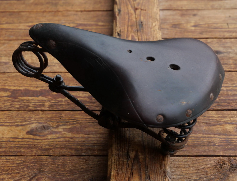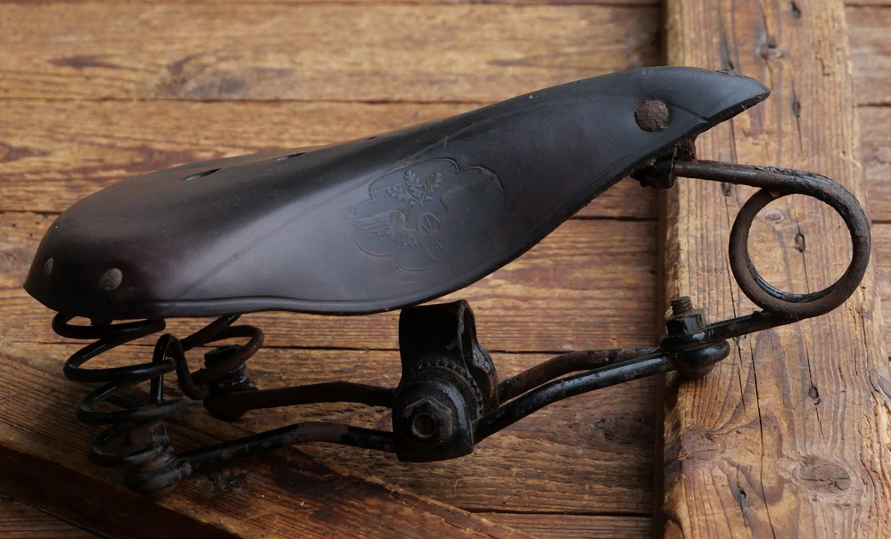 Sattel Herren, für Tourenrad, Leder, braun, Gestell lackiert, original 20er Jahre, NOS