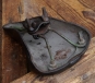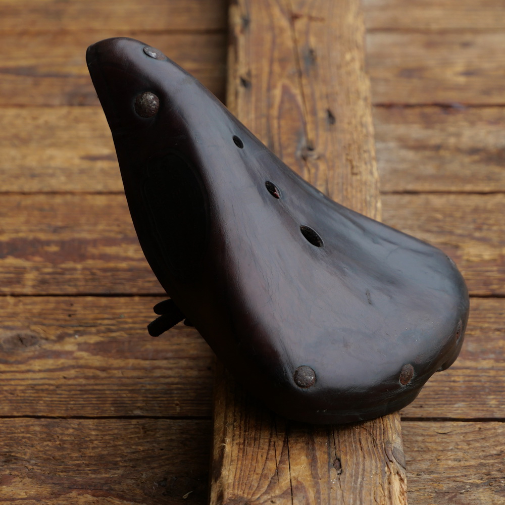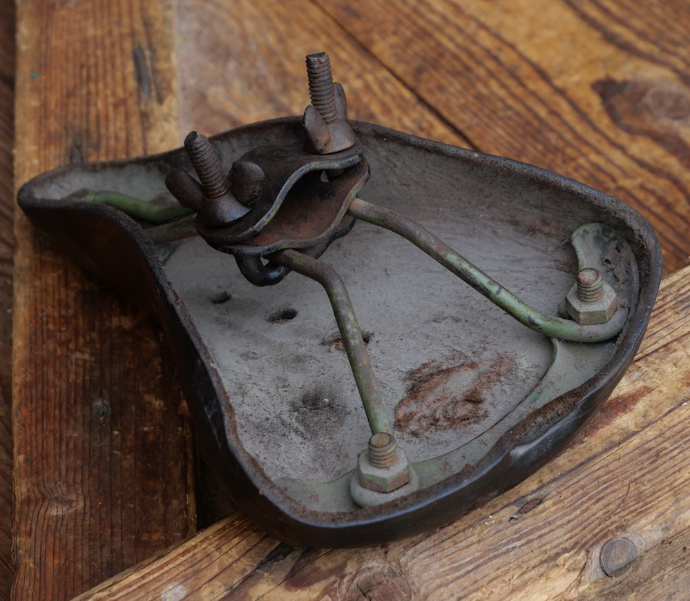 Sattel/Kindersitz STUKENBROK, für Oberrohrmontage, Leder, braun, Gestell vernickelt/lackiert, original 10er/20er Jahre, Länge ca. 20 cm, Breite ca. 14,5 cm, gebraucht mit schöner Patina, Zustand gemäß Bildern