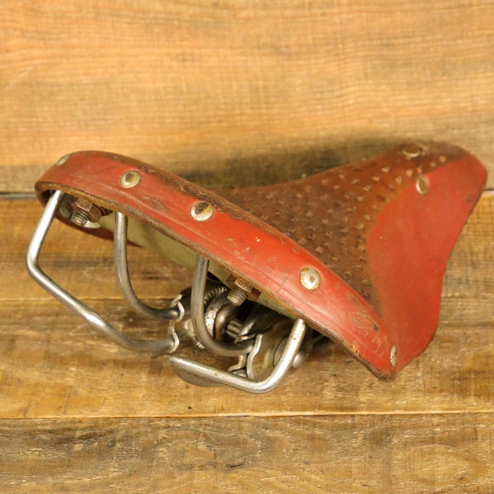 Sattel, MÖVE, DDR 50er/60er J., für Radball-/Kunstrad, Leder rotbraun, Breite ca. 21 cm, Länge ca. 28 cm, gebraucht mit Patina, Zustand gemäß Bildern