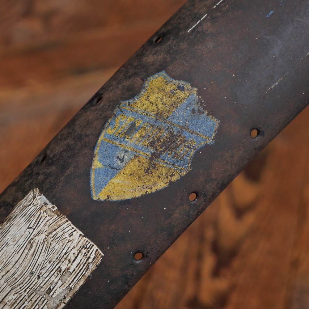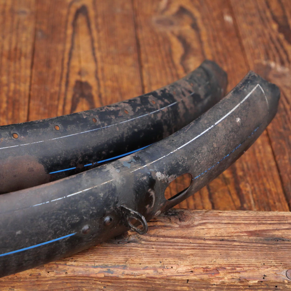 Schutzbleche Satz STANBERG, 26 Zoll, Damenausführung für Ballonrad, 30er J., schwarz, Linien blau/weiß, gebr.