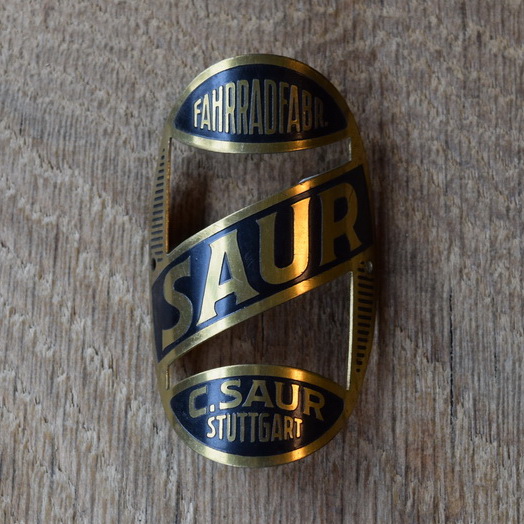 Steuerkopfschild Saur, 30-50er Jahre, Originalschild aus Sammlungsbestand, Lochabstand 34 mm Ideal für den passenden Fahrradoldtimer oder die Sammlervitrine. Zustand siehe Bild. Übrigens: Wir haben noch eine Riesenmenge weiterer Steuerkopfschilder und Schutzblechembleme im Bestand, die wir niemals alle listen können. Fragt einfach an, wenn Ihr auf der Suche nach einem speziellen Schild oder Emblem seid, vielleicht können wir helfen.