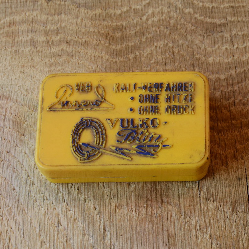 Flickzeug Dose orig. "PINNEROL" 60er Jahre, 76 x 48 x 20 mm, ohne Inhalt, kunststoff Zur authentischen Füllung haben wir noch altes Flickmaterial zum zuschneiden und orig. alte Continental Gummilösung im SHOP. Zum Gebrauch auch frische Ware in unseren TIPTOP Sets, ArtNr. 04656.