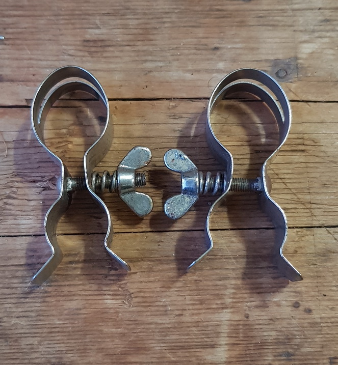 Pumpenhalter, vernickelt, orig. 20-30er Jahre, rare alte Neuware mit etwas Lagerpatina, ideal passend für gebrauchte Fahrradklassiker im Originallack.