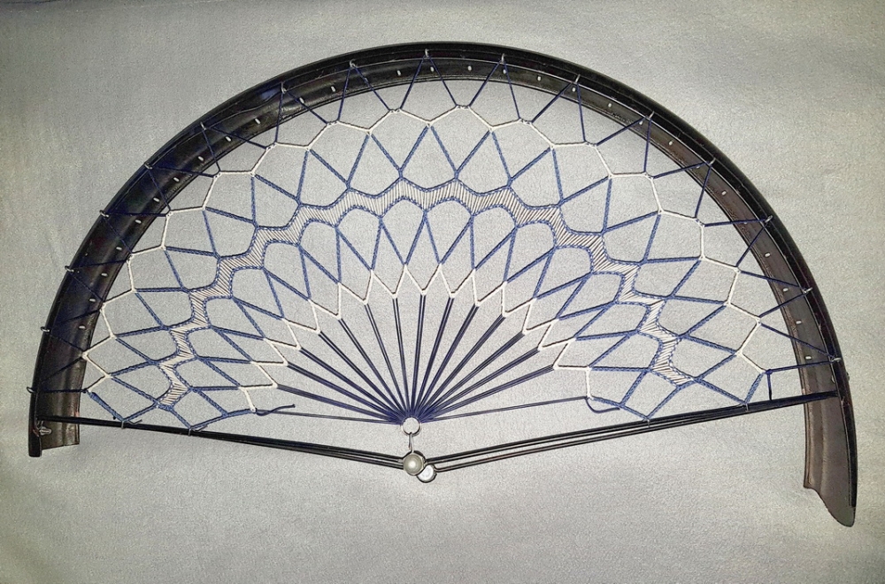 Rocknetz gem. Foto, DDR-Ausf. mit nur 16 Haken pro Seite, passend für 26/28" DDR-Räder der 50-80er Jahre, blau-weiß