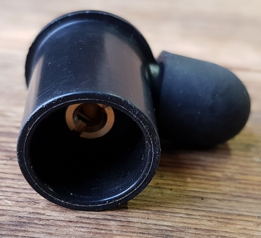 Zündkerzenstecker "NSU", schwarz, alte 50er Jahre Ausführung, nicht entstört, geschraubter Messingeinsatz