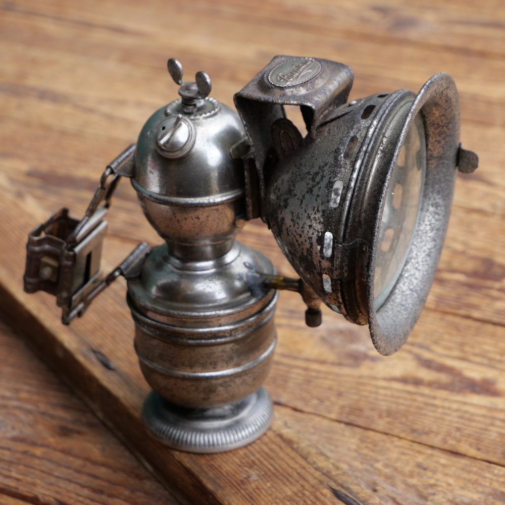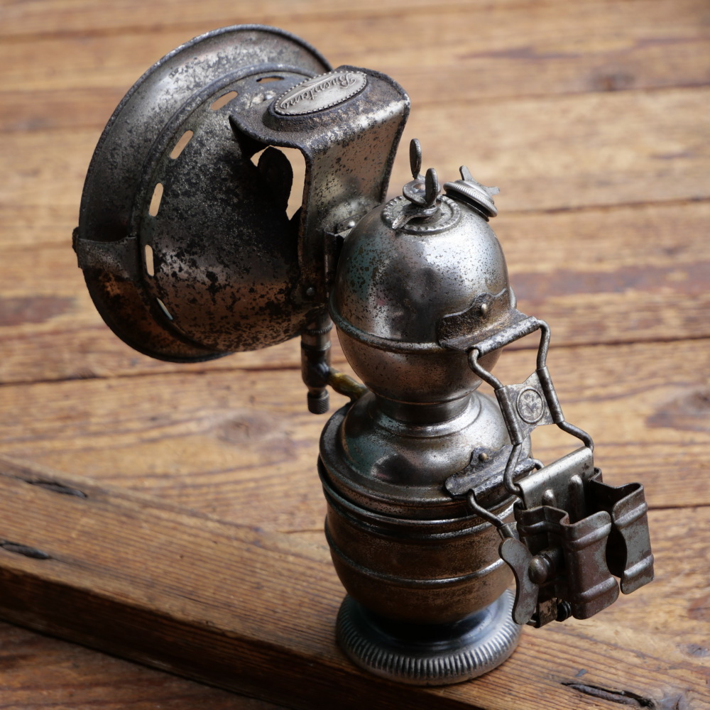 Karbidlaterne BRENTANO, original 10er/20er Jahre, vernickelt, gebraucht