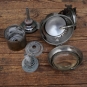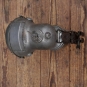 Karbidlaterne "Balaco", gr. Ausführung, Höhe ca. 18,5cm, Durchmesser ca. 10,5cm, Seitengläser verziert, vernickelt, 1920er Jahre, gebraucht mit Patina, Karbidtank partiell mit Spannungsrissen, Zustand siehe Bilder