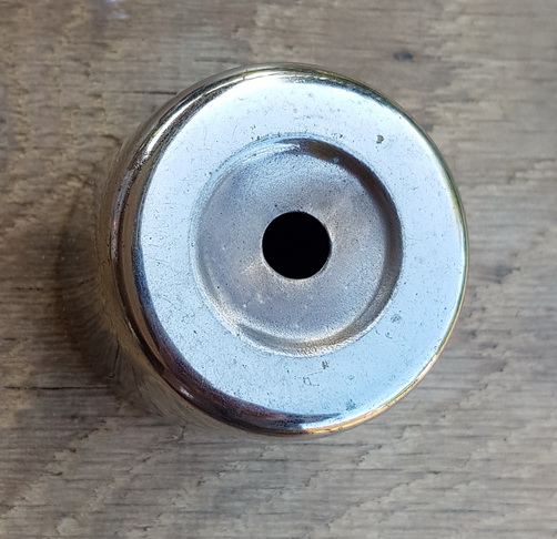 RIEMANN Karbidlaternen Becher, rare, orig. alte Neuware !, ggf. mit leichter Patina, Montage mit Becherschraube, Höhe 56 mm, Becher Durchmesser: ca. 55 mm. Passung oben: ca. 52,5 mm, Bohrung unten: 9,5 mm.