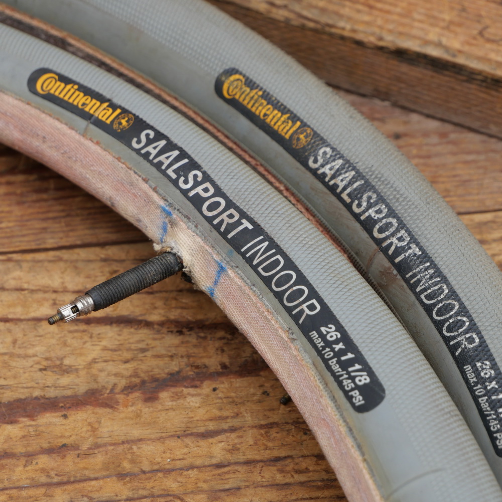 Reifensatz Fahrrad, CONTINENTAL Saalsport Indoor, 26 x 1/8, Schlauchreifen mit klassischem Profil, gebr.