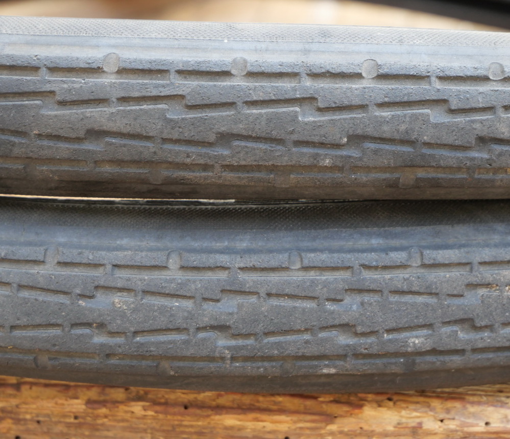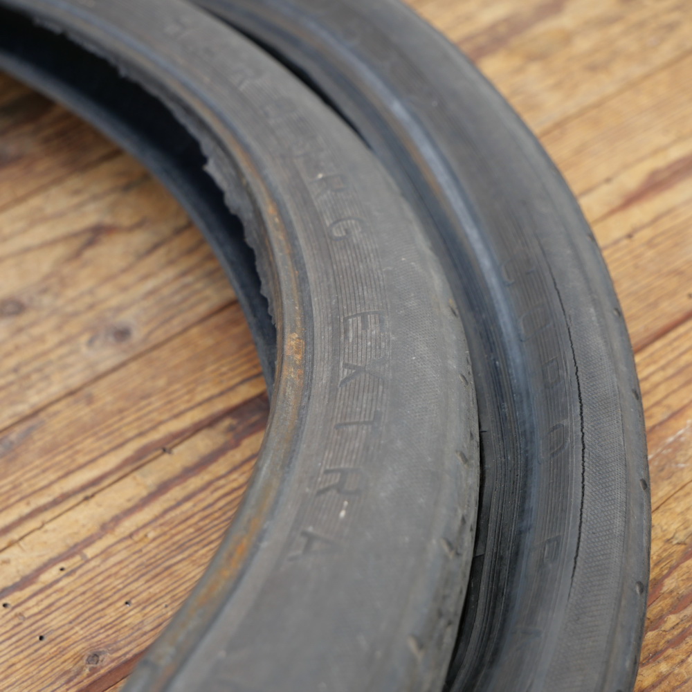 Reifensatz Fahrrad, PHÖNIX Harburg Extra Prima -A-, 26 x 1,75 x 2 (559), Draht, original 30er Jahre, schwarz, gebraucht mit entsprechenden Gebrauchsspuren. Für museale Zwecke optimal, für die gelegentliche Ausfahrt ok, für den harten Alltagseinsatz aber nicht die richtige Wahl.