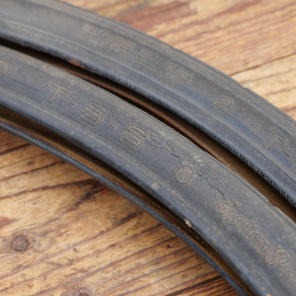 Reifensatz Fahrrad, TSG Extra Prima, 26 x 1 3/8 x 1 1/2 (559), Draht, original 30er-50er Jahre, schwarz. Für museale Zwecke optimal, für die gelegentliche Ausfahrt ok, für den harten Alltagseinsatz aber nicht die richtige Wahl...