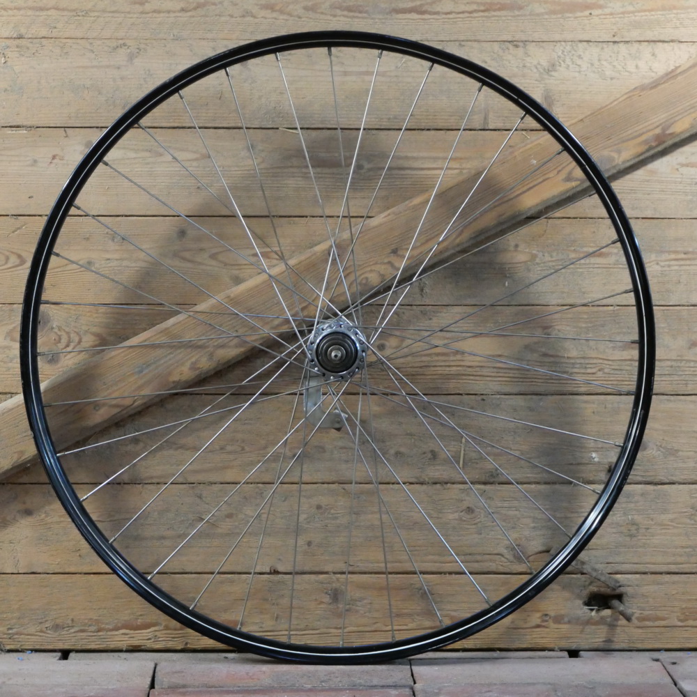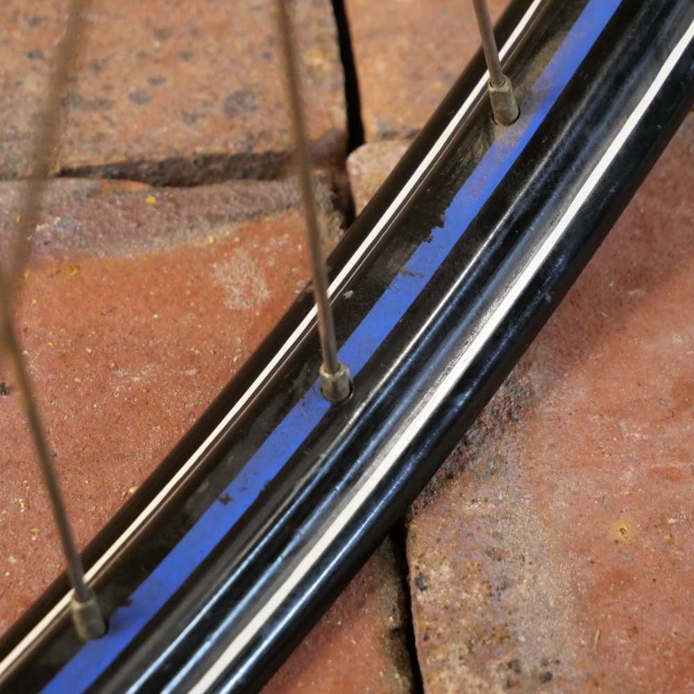 Hinterrad, 28 Zoll (622), 50er/60er J., Felge schwarz, Linien blau/weiß,...