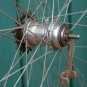 Hinterrad 28 Zoll (622) Drahtbereifung, Felge 20er/30er J., Holzdekor, F&S Torpedo-Nabe 1961, gebr.