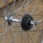 Hinterrad, 28 Zoll (622), für Sportrad, 50er/60er J., Felge verchromt, Breite 28 mm, Nabe UNION verchromt mit 3-fach Kranz 13/16/18, Einbaumaß ca. 112 mm, 2mm Speichen verchromt, leicht gebraucht mit schöner Patina, Zustand gemäß Fotos