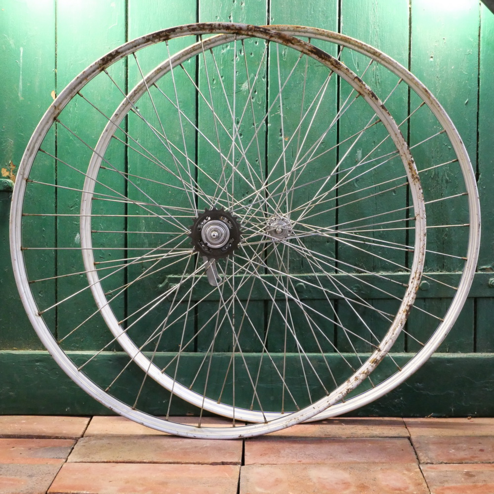 Laufradsatz 28 x 1,75, 1957, silber, Linierung weiß/blau, gebr.