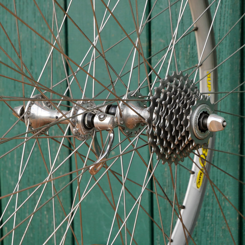 Laufradsatz für Drahtbereifung 28 Zoll (622), 90er J., für Rennrad, MAVIC CXP 30-Felgen, Alu, Hochprofil, Breite ca. 20mm, CAMPAGNOLO-Naben mit 8-fach Kassette 14-26 Zähne, Einbaumaße ca. 130/100mm, DD-Speichen Niro, leicht gebraucht in sehr gutem Zustand gemäß Bildern