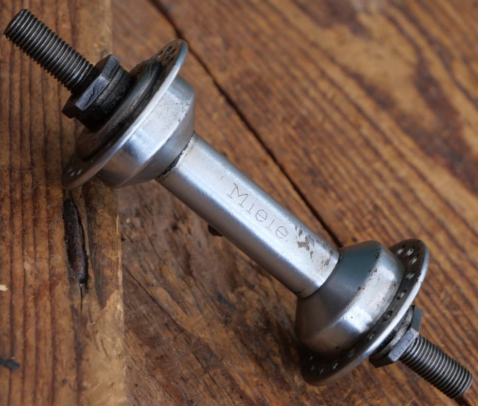Nabe Vorderrad Fahrrad MIELE, verchromt, 50er J., Einbaumaß ca. 95 mm, 36 Loch, gebraucht mit schöner Patina, Lager o.k., Zustand gemäß Fotos
