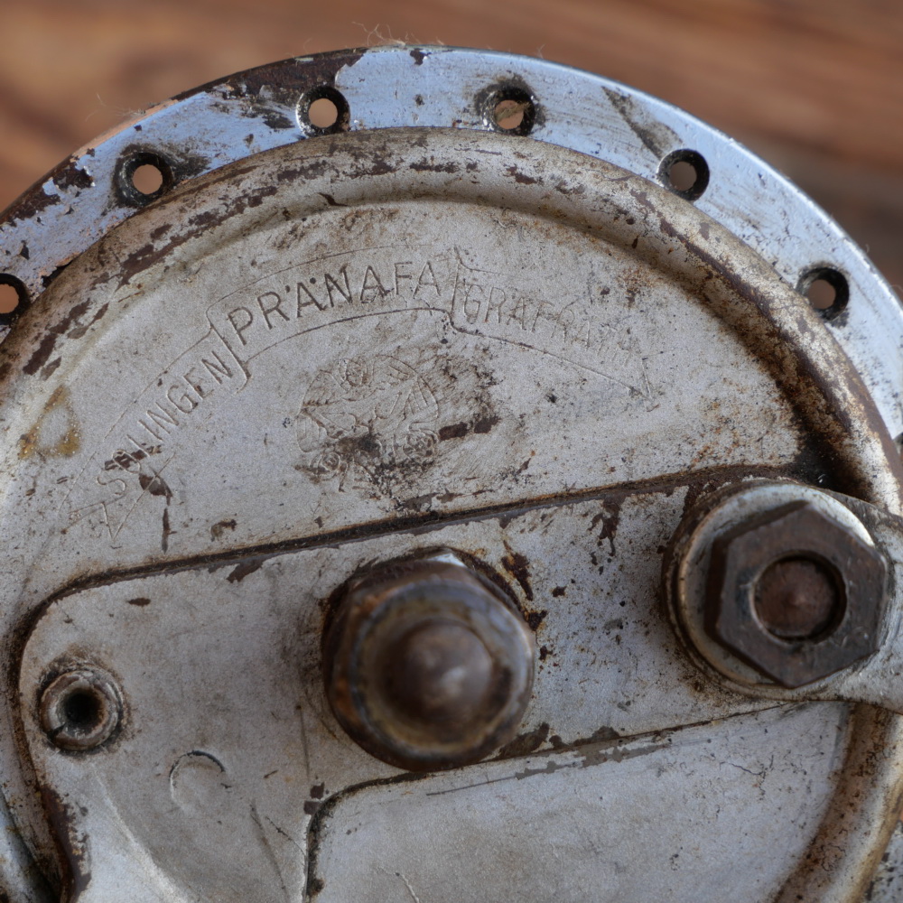 Nabe Vorderrad Fahrrad/Motorfahrrad, PRÄNAFA Trommelbremsnabe, 30er-50er J., gebr.