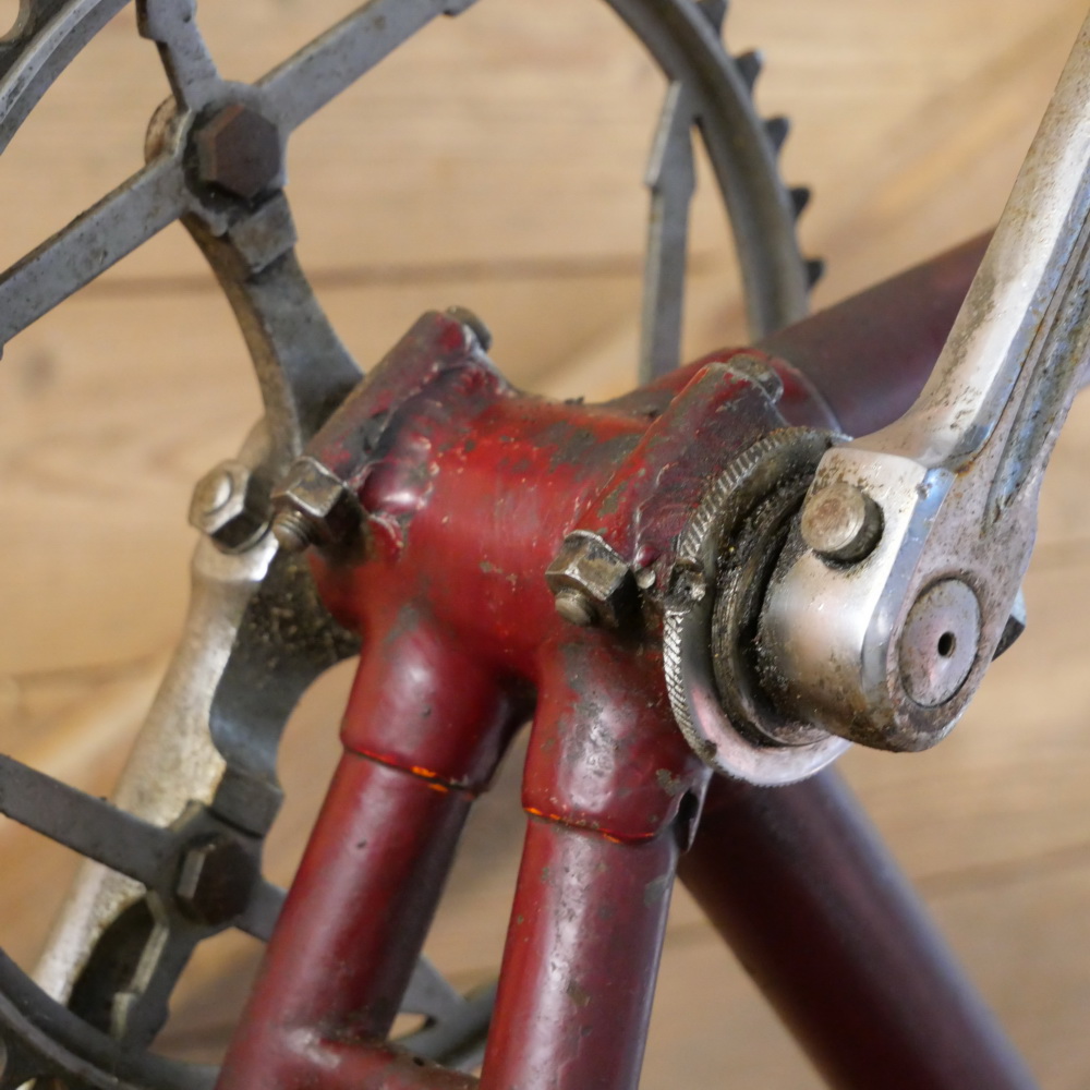 Fahrrad - Herrenrahmen HANSA/Berlin, für Randonneur, 1930er/40er J., Rahmennummer: 125XXX, Rahmenhöhe: 55,5cm, 27/28 Zoll, Einbaumaß: 110mm, sehr hochwertiger Rahmen, Keillager, Kettenblatt 48 Zähne, weinrot, Lager o.k. (Innenlager mit Spiel), oberer Steg gedrückt, gebraucht, Zustand gemäß Bildern