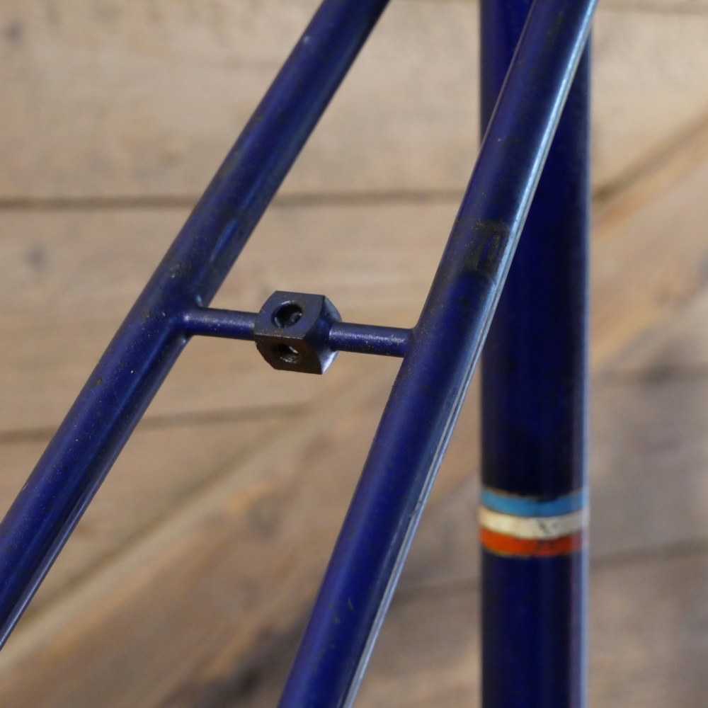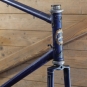 Fahrrad - Herrenrahmen RESI/Berlin, für Rennrad, 1950er J., Rahmennummer: 1939, Rahmenhöhe: 59cm, 27/28 Zoll, Einbaumaß: 114mm, sehr hochwertiger Rahmen vom Rahmenbauer, BSA Keillager, Kettenblatt 48 Zähne, Originallack blau mit Zierlinien gold/weiß, Lager gut, gebraucht mit schöner Patina, Zustand gemäß Bildern